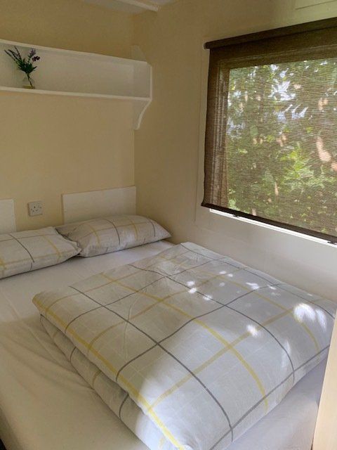 The Mini Cabin is on the lakes edge. Double bed, sofa, TV, Wifi. Shared fully equipped kitchen during the day and private bathroom in main cabin a few meters walk from the cabin. Sleeps 2 max.